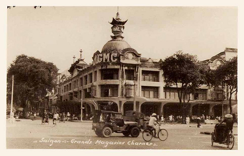 Hình ảnh thương xá Tax trên bưu thiếp xưa, khi đó còn mang tên Les Grands Magasins Charner (GMC) - Ảnh: T.L