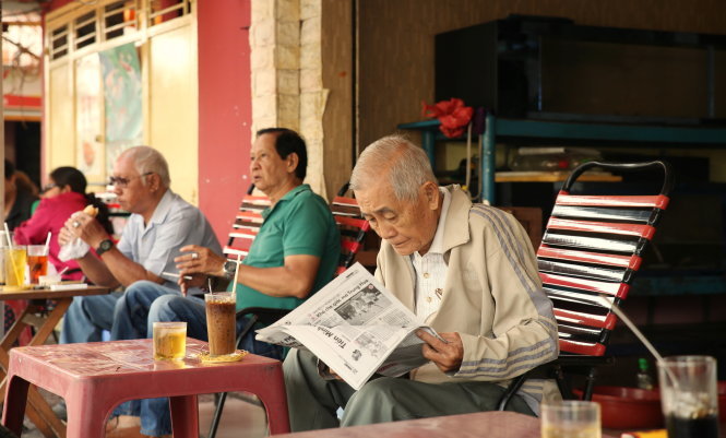 Đọc báo bên ly cà phê ở quán bên đường là thú vui của người Sài Gòn. Ảnh tư liệu.