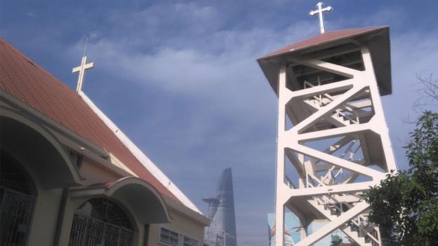 Nhà thờ Thủ Thiêm nhìn về trung tâm TP.HCM