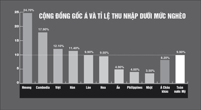 Cứ 100 người gốc Việt tại Mỹ, có 12 người sống ở mức nghèo khó. Theo tiêu chuẩn này, cộng đồng gốc Việt chỉ “giàu” hơn 2 cộng đồng gốc Á khác, là Hmong và Cambodia. (Hình: Khoa Vũ/Người Việt) |
