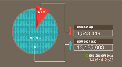 Di dân gốc Việt chiếm hơn 9% tổng di dân gốc Á tại Hoa Kỳ. (Hình: Khoa Vũ/Người Việt) |