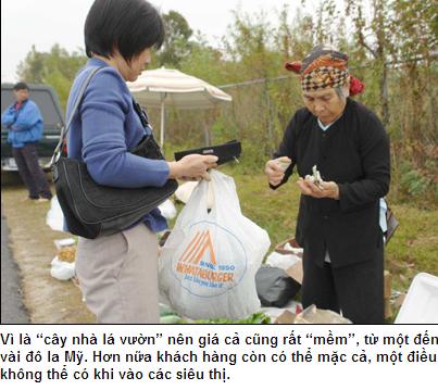 Bà Khanh Nguyễn, nhà cách chợ gần 20km, vui vẻ nói: “Một bó rau trong siêu thị bán một đồng ba mươi chín xu (1,39 USD), ở đây bán một đồng (1 USD). Vừa tiện, vừa rẻ. Nhưng thích nhất là tha hồ nói tiếng Việt, nghe đủ thứ giọng quê mình: Huế, Quảng, Nam, Bắc, hệt như mình đang ở cái chợ chồm hổm ngày xưa ở Việt Nam”.