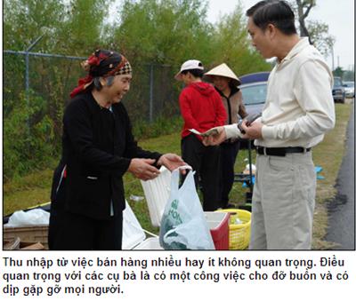 Mua bán là chuyện nhỏ. Điều quan trọng hơn khi đến với chợ chồm hỗm ở Houston là được trò chuyện, tâm sự với nhau chuyện gia đình bằng tiếng mẹ đẻ.