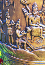 Đền đời Trang Vương nhà Châu [4] (696-682 TCN), ở bộ Gia Ninh có người lạ dùng ảo thuật áp phục được các bộ lạc, tự xưng là Hùng Vương, đóng đô ở Văn Lang, đặt quốc hiệu là Văn Lang, phong tục thuần lương chơn chất, chính sự dùng lối kết nút. Truyền được 18 đời, đều xưng là Hùng Vương.