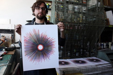 | Jer Thorp và một bản vẽ trực quan hóa các dữ liệu. Ảnh: Mixingreality |