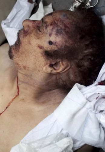 Hình ảnh được kênh Arabiya phát đi cho thấy cảnh ông Gaddafi trước khi chết - Ảnh: AFP |