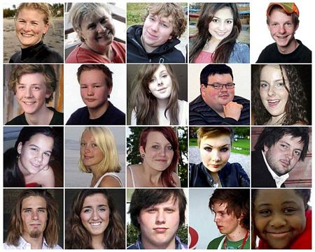 Ảnh các nạn nhân trong vụ xả súng được giới chức Na Uy công bố.