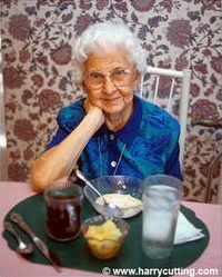 Tôi đặc biệt chú ý đến một bà Mỹ trắng, tuổi trên độ "thất thập cổ lai hi", nét mặt thanh tú, dáng người thon nhỏ, mãnh mai. Thời con gái chắc bà được xếp vào hàng mỹ nhân. Đôi mắt to và buồn. . . . đôi mắt như biết nói, khi đối diện với một người nào. Ngày đầu tiên, bà nhìn tôi cười và chỉ mẹ chồng tôi hỏi "tôi là gì". Tôi trả lời là “con dâu”. Câu chuyện giữa tôi và bà chỉ dừng lại ở những câu xã giao thông thường. Vốn liếng Anh ngữ nghèo nàn của tôi, không cho phép tôi tìm hiểu sâu hơn nữa. Hoặc nếu bà có tâm sự, tôi cũng không thể hiểu hết đuợc. Một bữa, tôi thấy bà không chịu ăn, bà ngồi trầm ngâm, rồi những giọt nước mắt liên tục tuôn trào trên gò má xanh xao. . . Bà khóc nức nở. Những người bạn cùng bàn an ủi, làm bà càng khóc to hơn. Tôi nắm tay bà, lau nước mắt và đút cho bà ăn. Bà vẫn khóc như một đứa trẻ. Liên tiếp ba ngày như vậy. Tôi được biết qua cô y tá nguời Việt, là lâu rồi con bà không đến thăm. Hình ảnh tôi đút cơm cho mẹ chồng, làm bà nhớ con và chạnh lòng buồn tủi.