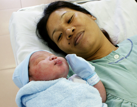 | Bé trai sinh vào thời khắc 'toàn nhất' Nặng 3,8 kg, bé trai chưa được đặt tên con của sản phụ Nguyễn Thị Hạnh, ở quận 3, TP HCM, chào đời bằng phương pháp sinh tự nhiên tại Bệnh viện Từ Dũ đúng thời khắc 8 số 1 trong niềm vui của gia đình lẫn người đỡ đẻ. Nhập viện hôm qua, đến sáng nay chị Hạnh được đưa vào phòng sinh do có dấu hiệu chuyển dạ. Khi đồng hồ điểm đúng 11h ngày 11 tháng 11 năm 20011, bé trai bụ bẫm cất tiếng khóc chào đời.  Bé trai sinh đúng 11h ngày 11/11/2011. Ảnh: Thiên Chương  Sản phụ Nguyễn Thị Hạnh và bé trai mới sinh. Ảnh: Thiên Chương Các bác sĩ Bệnh viện Từ Dũ cho biết, chỉ trong sáng 11/11 có gần 50 trẻ chào đời. Dự kiến còn 100 bé khác cũng được sinh trong ngày hôm nay. Nguồn: vnexpress.net |