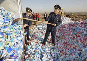 Nhân viên nhà nước Trung Quốc đang tiêu hủy sữa nhiễm melamine.