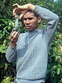 Một trong những người "kiên trì" nhất trong việc tìm kiếm con tắc kè 3 lạng trở lên là anh Hoàng Văn Thìn, trú tại xã Kim Thành. Đã 2 tháng từ khi có tin "sốc" như trên, anh cùng một người bạn tên Hoàn ở xã Quang Thành đã cất công săn tìm tắc kè, nhưng đều bất lực và chỉ tìm được những con có trọng lượng nhỏ hơn.