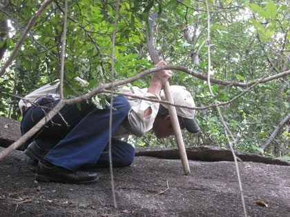 Mặc cho trời mưa ẩm ướt cộng thêm gió mùa khiến cho tiết trời thêm lạnh giá nhưng những kẻ săn tắc kè vẫn tay bị tay gậy leo lên từng vách núi hòng tìm kiếm cơ may săn những con tắc kè "khủng" trên 3 lạng để mong... đổi đời.