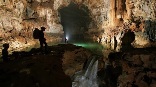 Để đến được hang này phải bơi 2km trong nước. Ảnh: Đoàn thám hiểm cung cấp/TT.