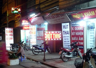 Trong vai một “đôi vợ chồng sinh viên” chúng tôi đi “giải quyết hậu quả” với lý do: Lỡ dại nhưng hiện không đủ điều kiện nuôi con. Vừa bước vào “khu phố phòng khám tư” nằm trên đường Giải Phóng (Hà Nội), “lớ ngớ” hỏi thăm một chút, không đầy một phút sau đã xuất hiện một phụ nữ tự giới thiệu tên là Loan, khoảng tầm ngoài 40 tuổi kéo chúng tôi ra một góc rồi nháy mắt nói nhỏ: “Cần giải quyết hậu quả phải không, để chị dẫn đi vừa kín đáo, an toàn, giá cả lại phải chăng”. Theo chân người phụ nữ này chúng tôi được dẫn đến một căn phòng, rộng chừng hơn chục m2, được ngăn đôi bằng tấm ri đô bằng vải trắng đã ố vàng. Dọc theo hàng ghế nhựa dựng sát theo bờ tường là gần một chục cô gái nữa đang chờ tới lượt, khuôn mặt cúi gằm hoặc nhìn nhau không biểu lộ cảm xúc. Theo quan sát của chúng tôi thì một nửa trong số đó ở vào độ tuổi từ 18 trở xuống. Tôi dừng mắt lại ở một khuôn mặt còn khá trẻ, không thấy ai đi cùng mà chỉ ngồi một mình viết vẽ loằng ngoằng lên tờ giấy. Lân la làm quen thì được biết cô gái này hiện mới đang học lớp 11, cô không nói là trường nào nhưng điều đặc biệt là mới chỉ khoảng nửa năm nhưng cô đã phải vào cơ sở này đến hai lần. Lần trước là sau đợt nghỉ hè hết lớp 10…
