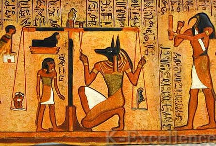 Người Ai Cập cổ đại tin rằng khi sang thế giới bên kia, tất cả mọi linh hồn đều bị phán xử bởi thần Osiris mình người đầu cáo tại Đại sảnh Sự thật (Hall of Truth).