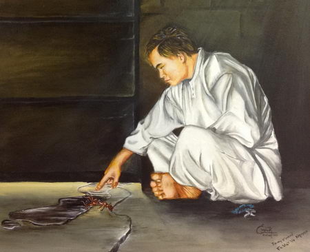 Một cựu tù nhân lương tâm kể lại rằng. Trong một ngày bị biệt giam u ám, buồn tủi cho thân phận tù đày. Anh thấy một con kiến bò vào phòng giam. Bất chợt anh đưa tay “chẹt” nó, nhưng anh liền rút tay lại vì hối hận hành động hơi tàn nhẫn của mình – giết con kiến vô tội. Vì chuyện lỡ “chẹt” con kiến, hậu quả là con kiến bị gãy một chân và phải lê từng bước chậm chạp đau đớn. Xấu số hơn, con kiến càng lê la đau đớn, thì càng bị lún vào một vũng nước nhỏ còn sót lại trên nền phòng giam. Người tù nhân nhìn con kiến bất lực vùng vẫy trong vũng nước – càng nhìn con kiến, càng thầm trách mình: Sao mình tàn nhẫn hại kiến con! Người tù nhân muốn cứu con kiến ra khỏi vũng nước, nhưng cũng e sợ mình có thể làm kiến con thêm đau và gãy chân còn lại. Con kiến bất lực vũng vẫy. Tù nhân trách mình, bất lực vì không cứu được con kiến. Hai bên cứ nhìn nhau, nhìn nhau, không biết nên trách hay nên hờn…