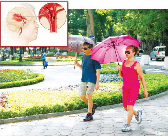 Thời tiết nắng nóng dễ gây bệnh tăng huyết áp, đột quỵ ở người cao tuổi, vì vậy khi ra nắng cần che ô,