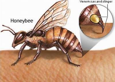 Nọc ong được chứa 2 tuyến nọc dẫn vào một kim chích sau đít ong.
