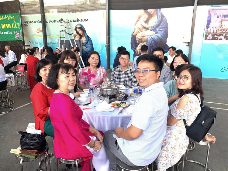 Buổi liên hoan sôi động với mục xổ số may mắn. Rất nhiều món quà có giá trị là những đồ gia dụng và 10 vouchers giảm giá để mua áo quần Việt Tiến do ông nguyên phó tổng Việt Tiến Lê Viết Tòa gởi tặng. Mọi người ra về đều có quà tặng, gồm Lịch Công giáo TGP Huế, lịch Đồng hương Dinh Cát 2026 treo tường có ghi những ngày lễ Công giáo.