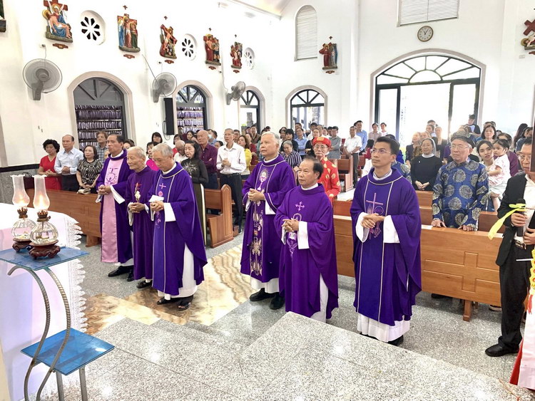 Thánh lễ nối tiếp với cha Lê Văn Hải chủ tế, quý cha đồng tế có cha Trần Văn Lộc, cha Nguyễn Văn Dụ, cha Đỗ Bá Thái, cha Nguyễn Huệ, cha Lê Thiện Long.