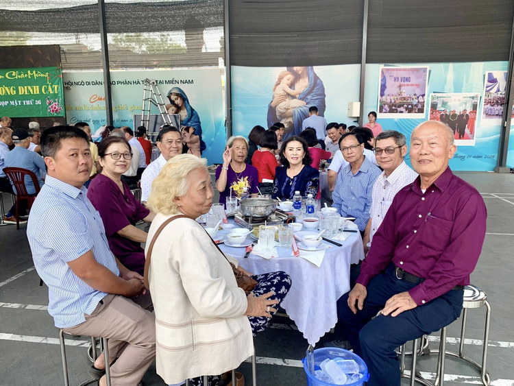 Buổi liên hoan sôi động với mục xổ số may mắn. Rất nhiều món quà có giá trị là những đồ gia dụng và 10 vouchers giảm giá để mua áo quần Việt Tiến do ông nguyên phó tổng Việt Tiến Lê Viết Tòa gởi tặng. Mọi người ra về đều có quà tặng, gồm Lịch Công giáo TGP Huế, lịch Đồng hương Dinh Cát 2026 treo tường có ghi những ngày lễ Công giáo.